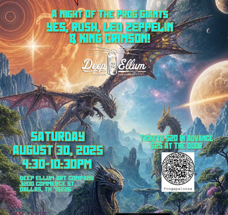 We started work on the event text logo and the initial poster concepts back in December of 2024 for a PROGAPALOOZA, a progressive rock music festival in Dallas, Texas on August 30, 2025 and hosted by Deep Ellum Art Co.  It would feature Close to the YES, Clockwork Angels (RUSH), The Led Zeppelin Project and …
