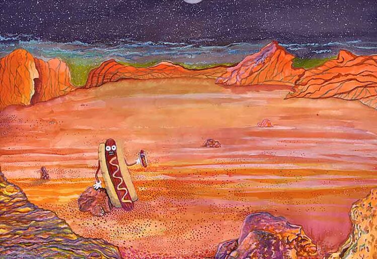 A Hotdog Holding A Hotdog On Mars painting
