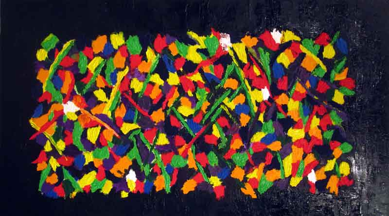 This mixed media painting using an airbrush was an experiment in creating a stream of consciousness piece of art. I started drawing without any preconceived notion of what I was going to create beforehand. I imagined an alien tentacled being in outer space that has these electrodes and tubes connected to it along with a giant strand of DNA material and biomechanics, all floating in front of your eyes.